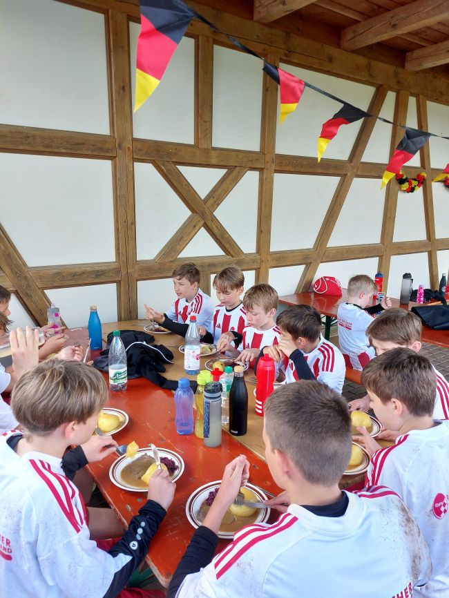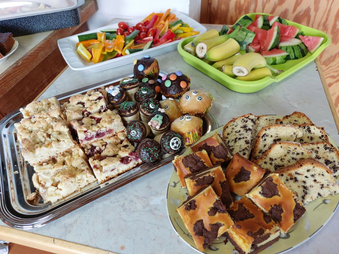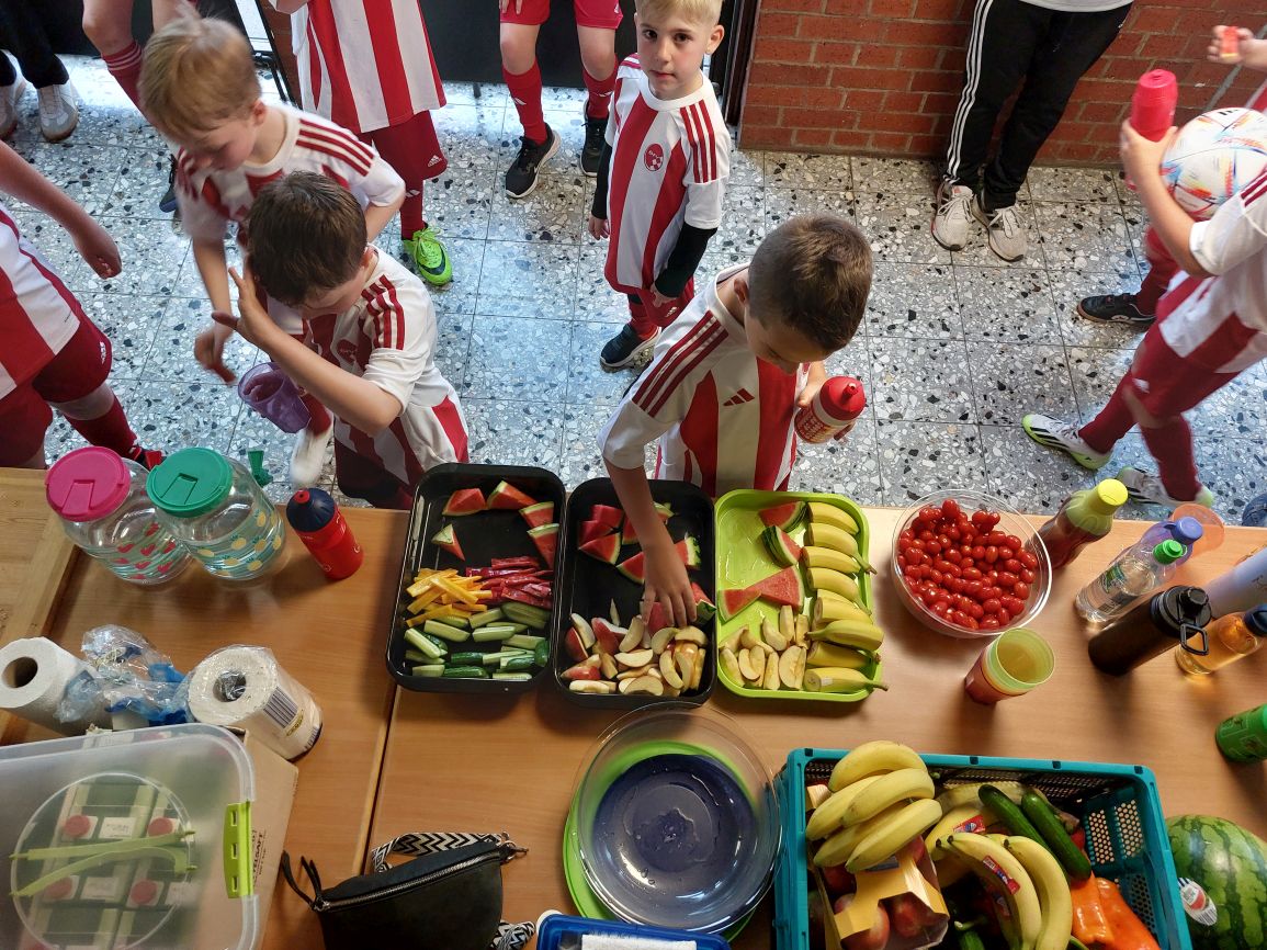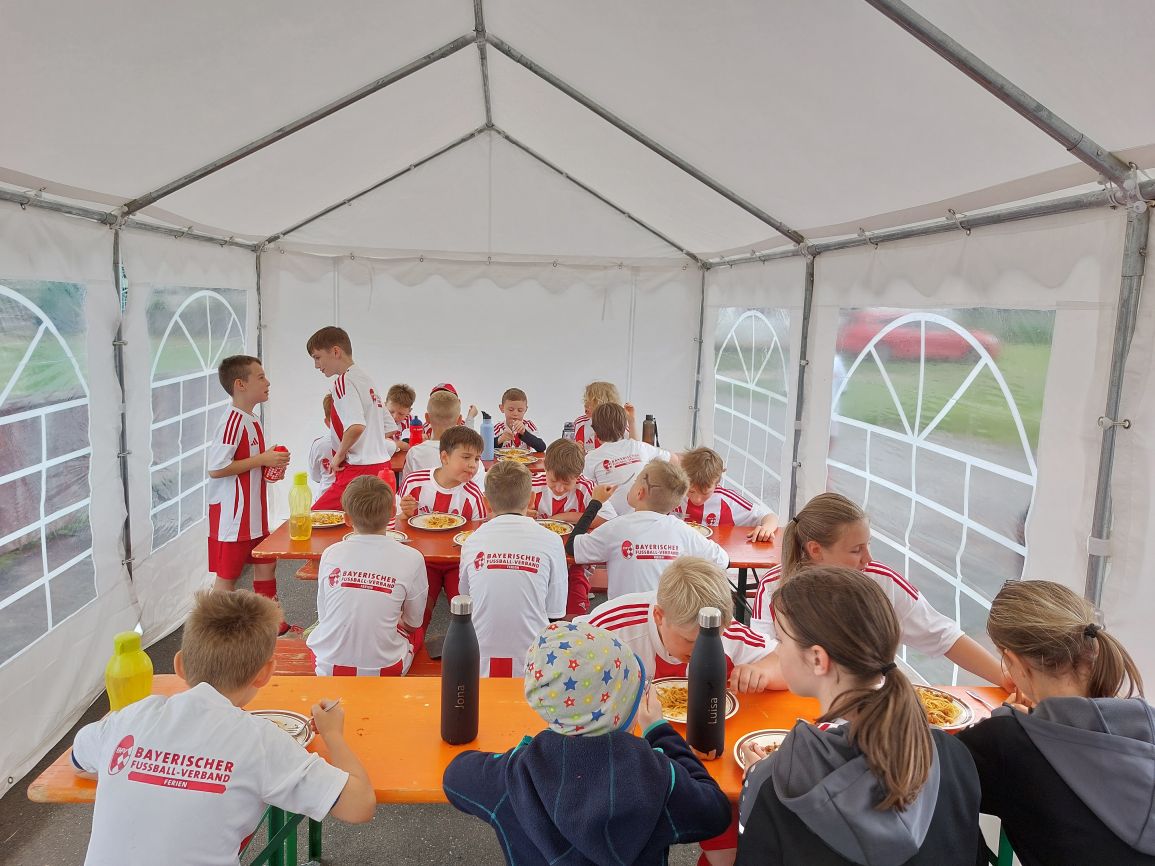 Für das leibliche Wohl sorgte das Team der DJK SG Stadelhofen, mit Unterstützung der Gastwirtschaft Schrenker aus Stadelhofen, Scherzer & Boss Fruchtgemüse GmbH sowie dem Team der Rewe Hoh aus Scheßlitz. Es gab an allen Tagen reichlich gesunde Obstpausen mit frischem Ost und Gemüse, sowie selbstgebackenen Kuchen und Torten. Die Verpflegung zum Mittagessen ließ es an nichts fehlen. Wir danken allen die uns so eifrig unterstützt haben und die an unserer Fußballschule mitgewirkt haben.