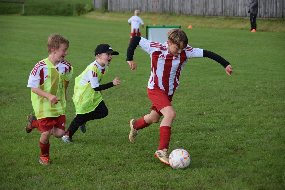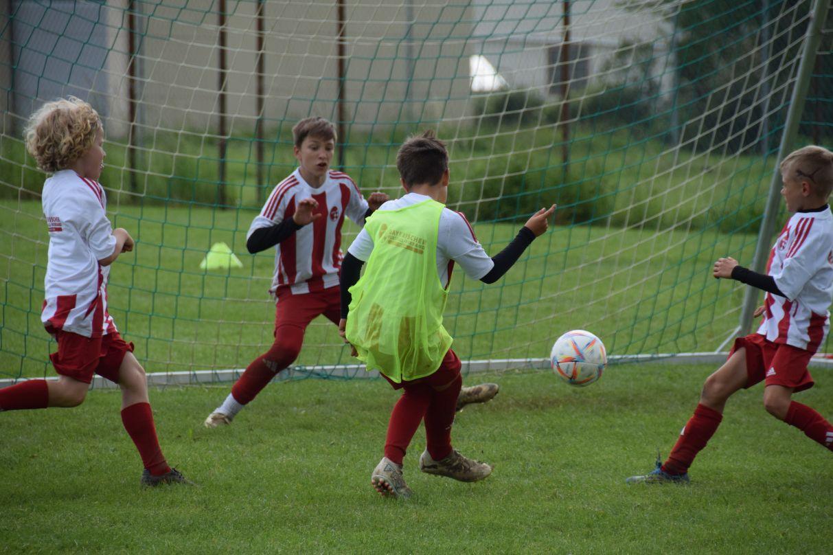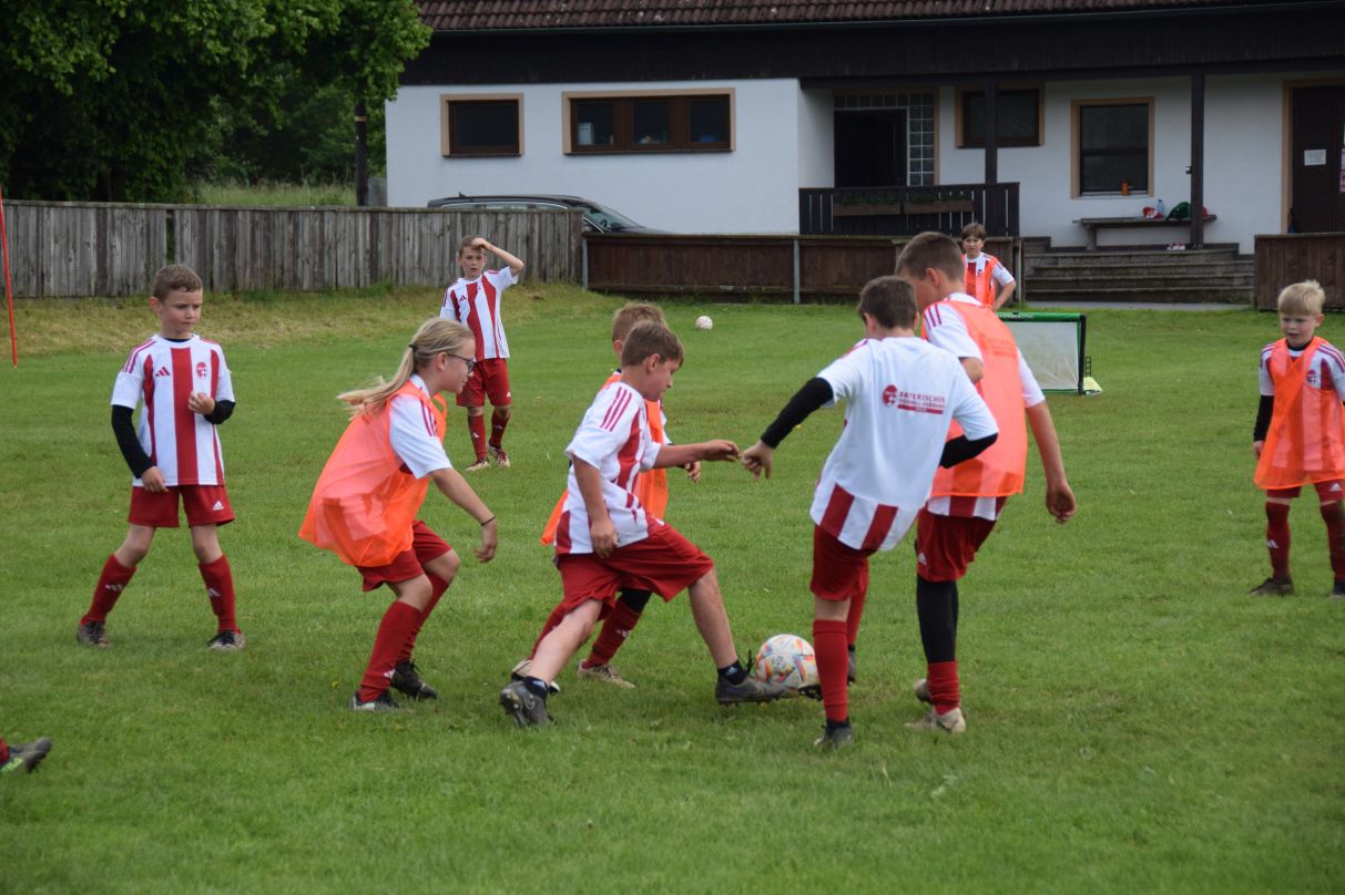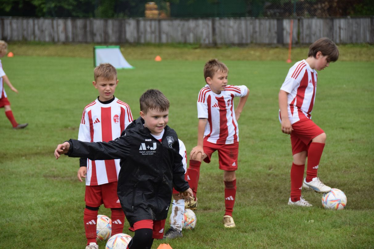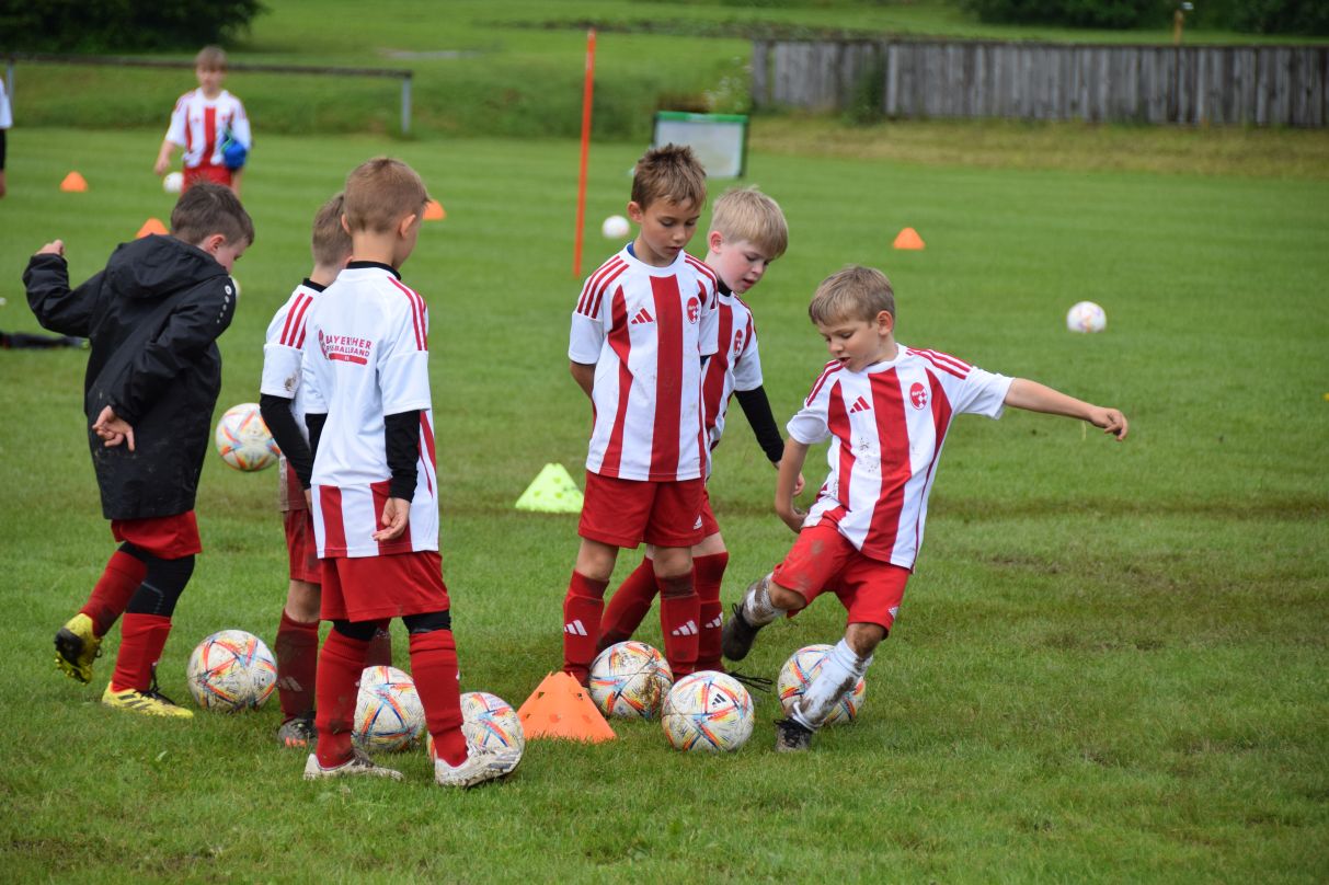 39 Nachwuchskicker hatten unter Campleiter Hubert Richter (A-Lizenz) und Trainer Mathias Kraus, Stefan Born, Patrick Krapp und Andreas Ziegler (SG Stadelhofen) sowie Organisatorin Patricie Pitterich (SG Stadelhofen) an jeweils drei Tagen von 9:00 Uhr bis 16:00 Uhr pure Lust auf Fußballspaß, lernten spezielle Fußballtechniken und neue Freunde kennen. An allen drei Tagen wurden die Techniken der Spieler-innen wie Passen, Torschuss, Ball- An- und Mitnahme in verschiedenen Spiel-, Wettkampf- und Turnierformen geübt und vertieft.